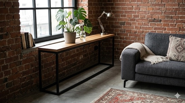 Konsola loft w salonie musi być dopasowana do przestrzeni, nie odwrotnie.